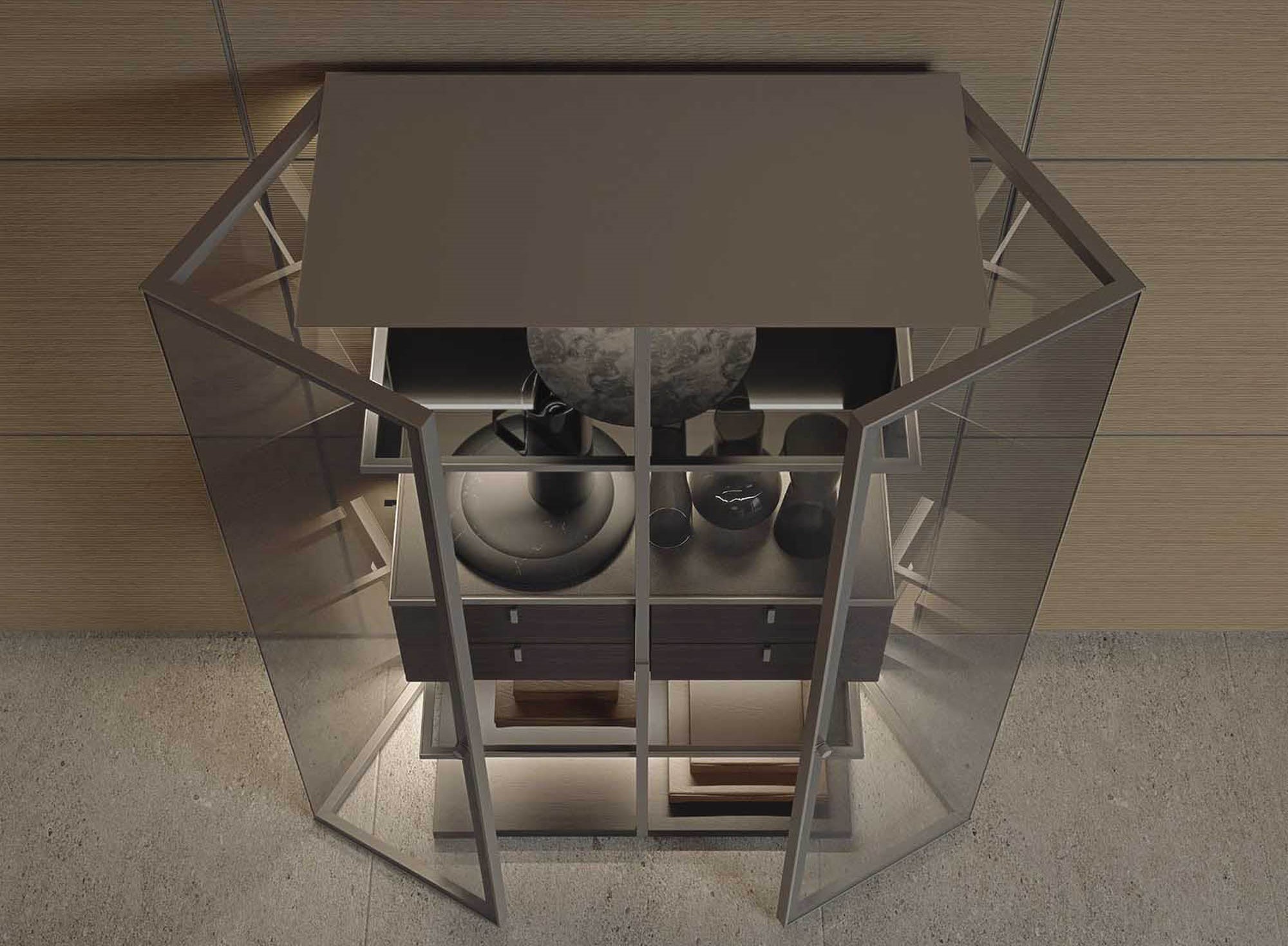 FOUR DRAWERS WINGED GLASS CABINET